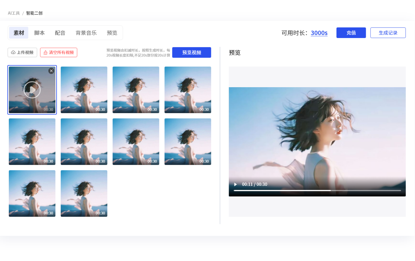 多素材轻松批量处理, 高效生成符合要求视频
